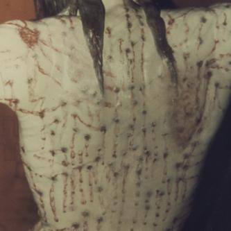 Une centaine de coups de fouet, une flagellation atroce, un cartilage du nez cassé avec un objet dur, des coups de poing porté au visage, de la peau écorchée, des cheveux couverts de sang, une transpiration abondante et des reins qui ne fonctionnent presque plus.